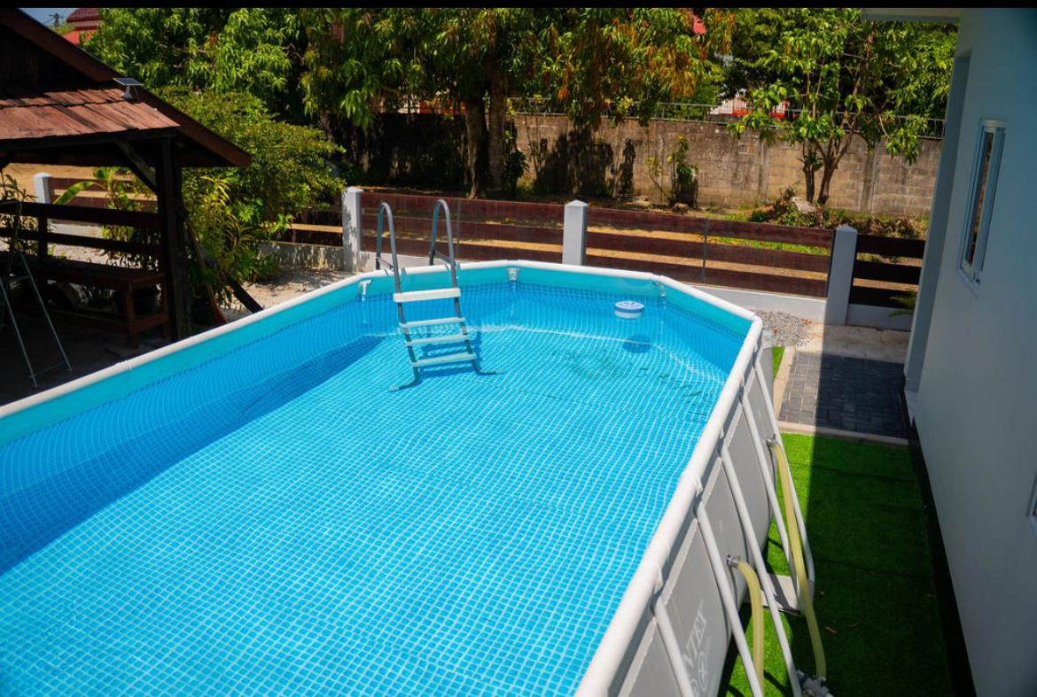 Achterop het erf verandert de sfeer compleet. Het is een groene oase vol fruitbomen, fluitende vogels, een zwembad en een gezellige kabana. Het huis heeft een eigen achterterras waar je volop privacy geniet, terwijl het zwembad gedeeld wordt met de twee appartementen achterop het erf. Hier voel je je ver weg van de drukte van de stad, midden in de natuur van Suriname.